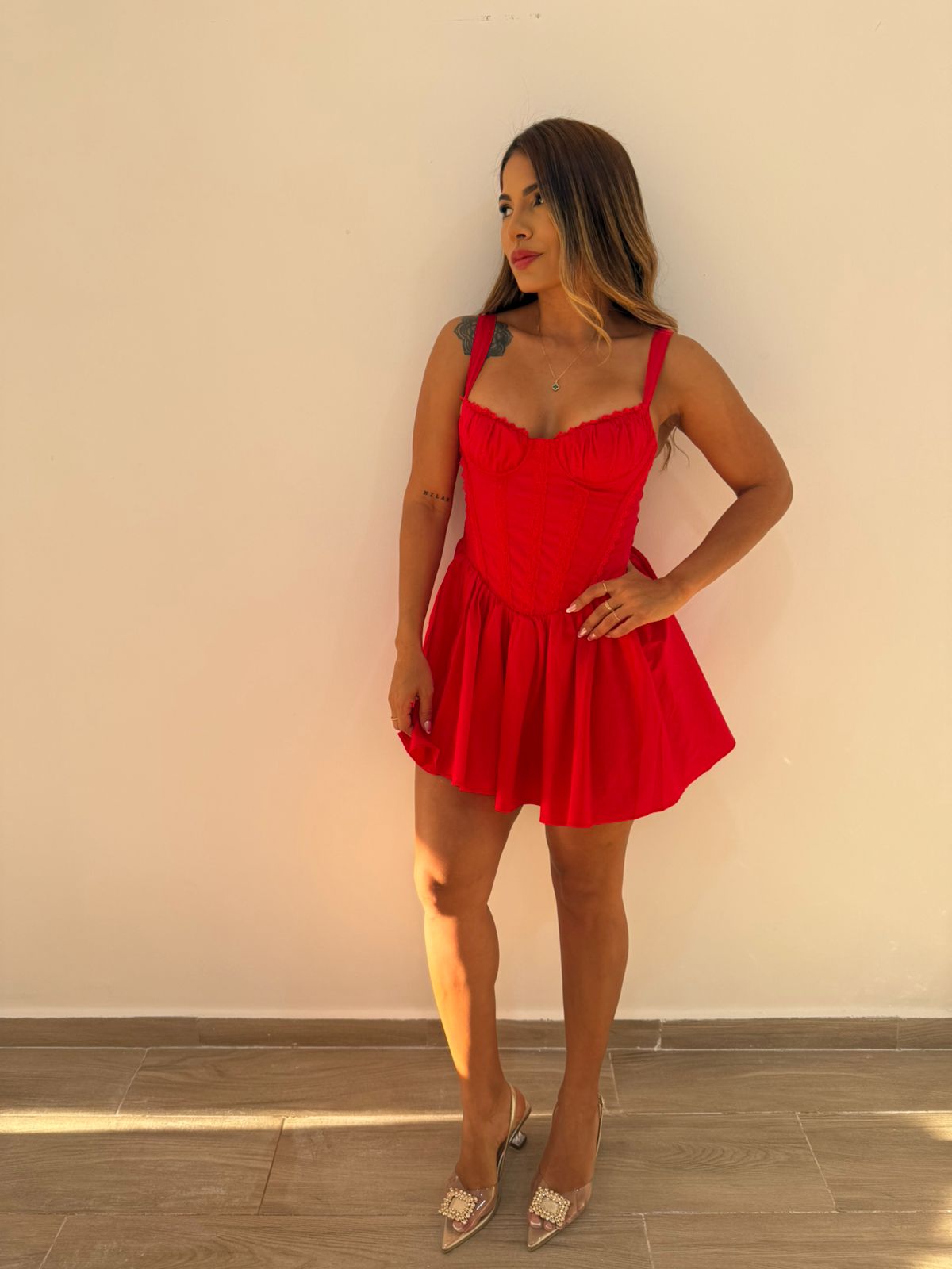 Hermoso vestido balance corto tipo corcel, disponible en tres tipos de colores, blanco, azul y rojo.